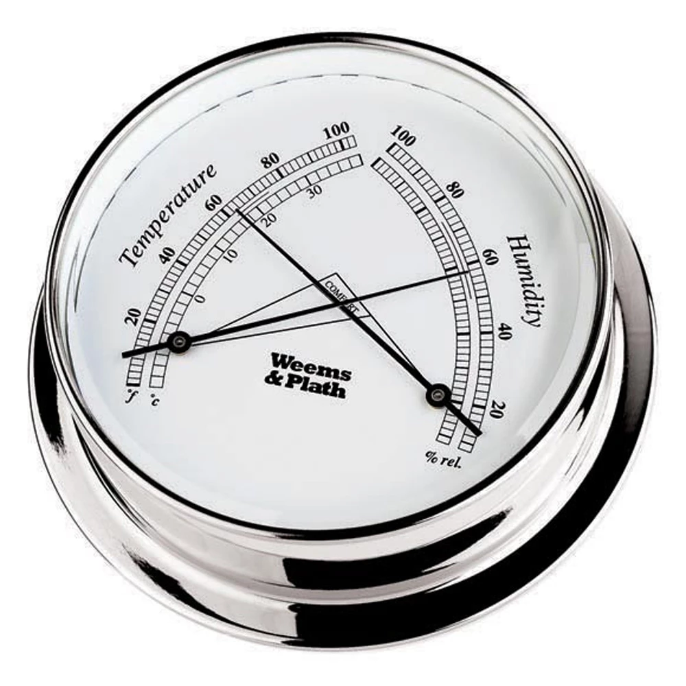 scale, and the hygrometer shows percentage of relative humidity on