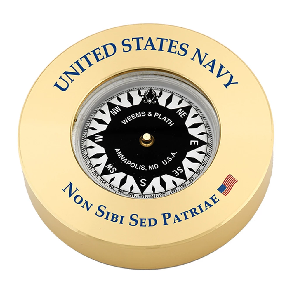 This officially licensed United States Navy Brass Compass Chart Weight is printed in navy blue with the motto of the U.S. Navy. The American flag is printed in full color. Made to order. Please allow 1 week for production.